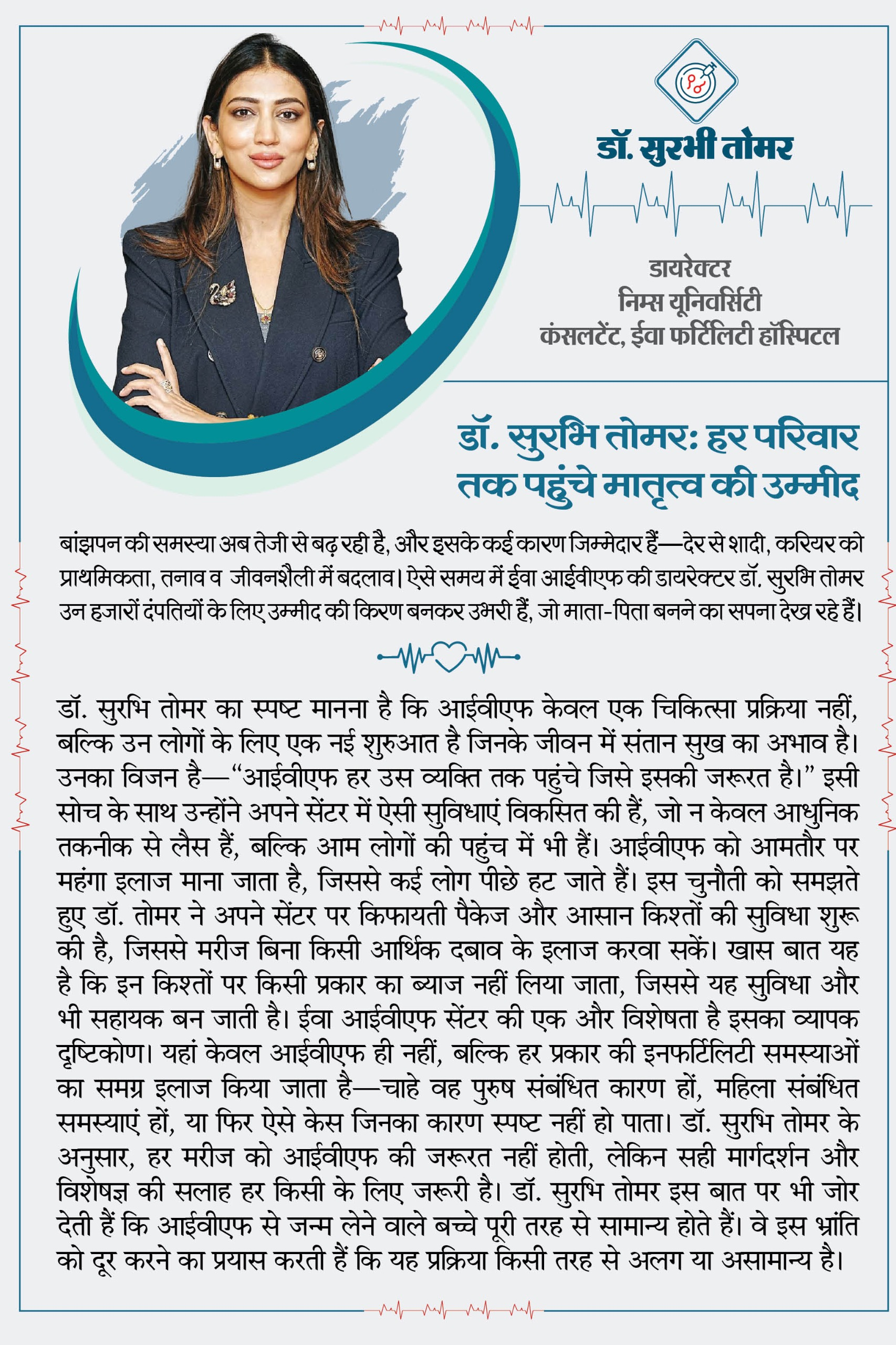 Evaa Hospital has decades of experience in providing complete care from early stage of a girl till she turns into a grandmother. We have a valuable experience, support by a team of compassionate and dedicated medical professionals with a speciality in Assisted Reproductive Technologies (ART), they are some of best IVF specialists in Jaipur.